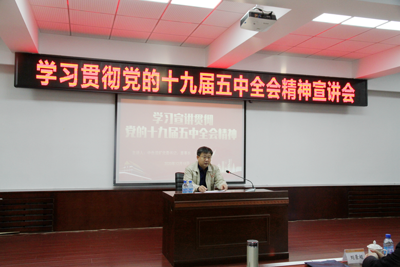 12月18日上午,中色沈礦董事長、黨委書記劉景超到鐵嶺藥劑宣講黨的十九屆五中全會精神。