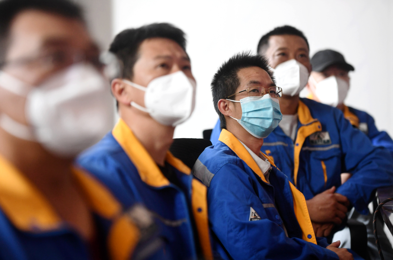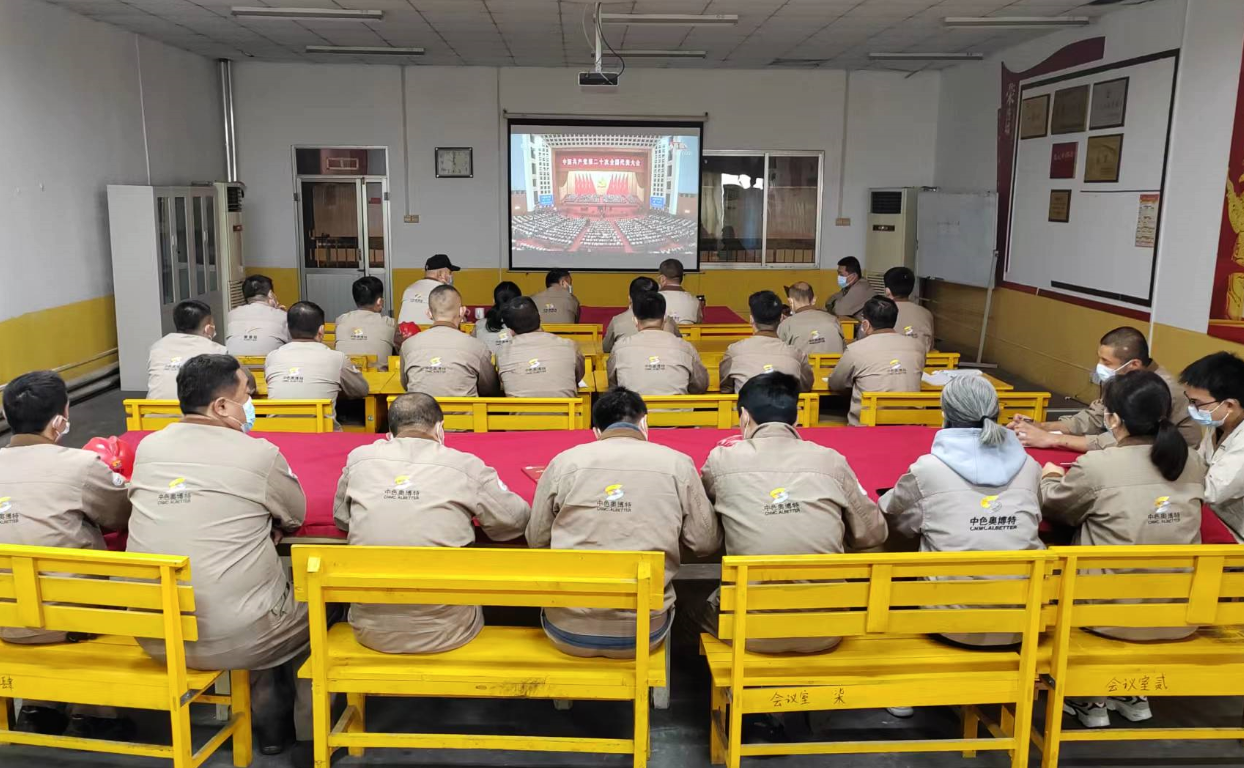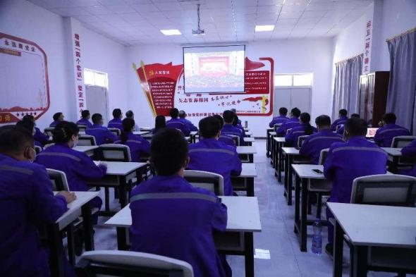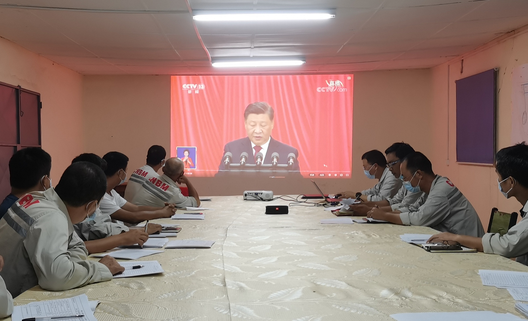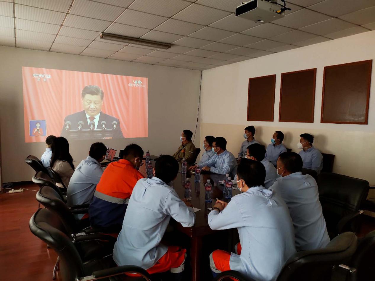 ![]() 中色鑫誠巴依姆項(xiàng)目部收看現(xiàn)場 |